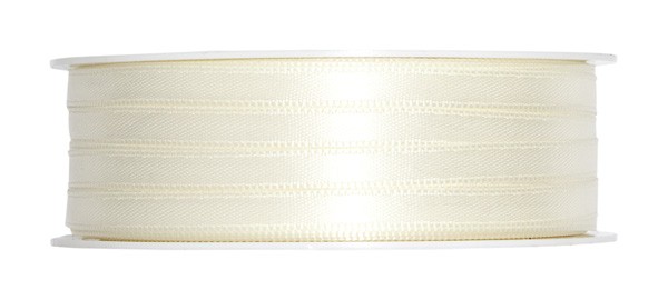 Ein sehr schönes Doppel Satinband in creme als Standardband für Ihre floristischen Arbeiten. Dieses Satinband lässt sich sehr gut in Gestecke und Blumensträuße einbinden. Bei Gestecken oder auch Blumensträußen sind Dekobänder eine schöne Ergänzung. Man kann die schmalen Bänder sehr schön runterhängen lassen.