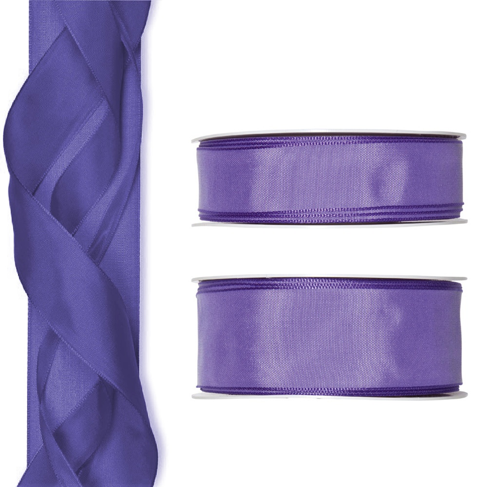 Satinbänder sind für Dekorationen ein must have – als Geschenkband zum Aufhängen von Dekoartikeln in der Wohnung und ganz wichtig zum Schleifen binden. Dieses Satinband mit einer eingearbeiteten dünnen Drahtkante macht das Schleifenbinden ganz leicht, da die Bögen gleich ihre Form behalten.