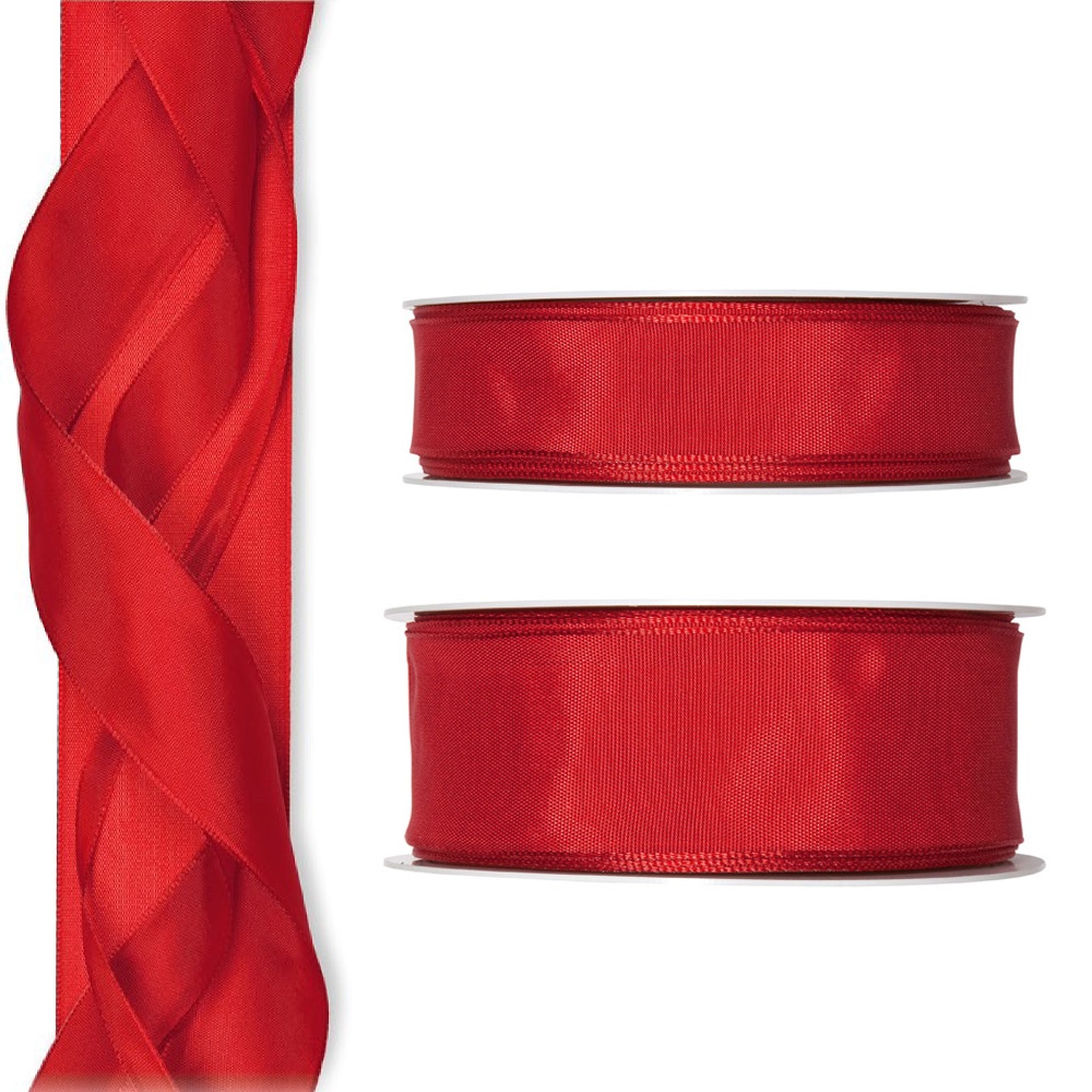 Satinbänder sind für Dekorationen ein must have – als Geschenkband zum Aufhängen von Dekoartikeln in der Wohnung und ganz wichtig zum Schleifen binden. Dieses Satinband mit einer eingearbeiteten dünnen Drahtkante macht das Schleifenbinden ganz leicht, da die Bögen gleich ihre Form behalten.