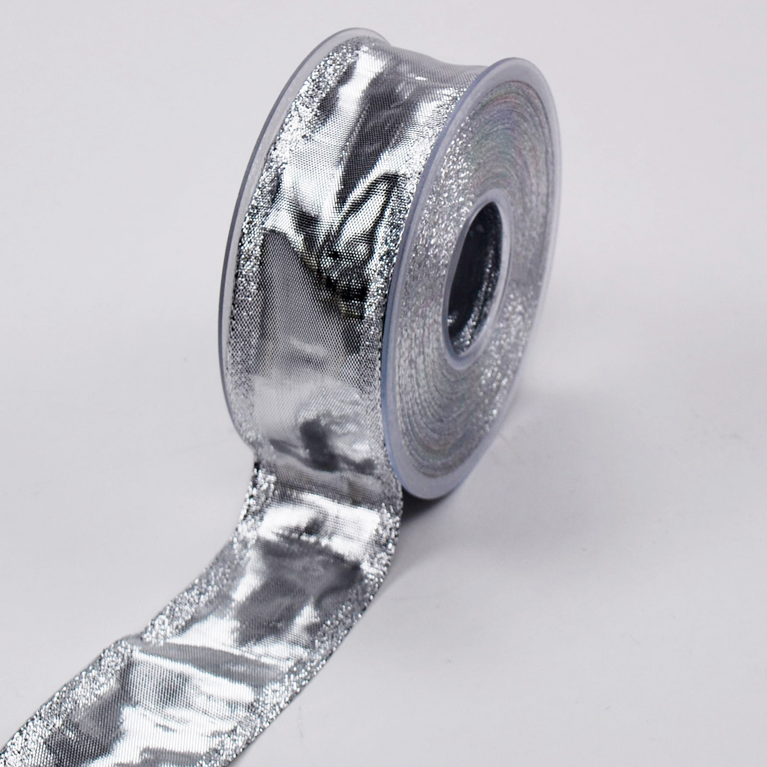 Weihnachtsband Silberband glänzend mit biegsamer Drahtkante 40mm25m