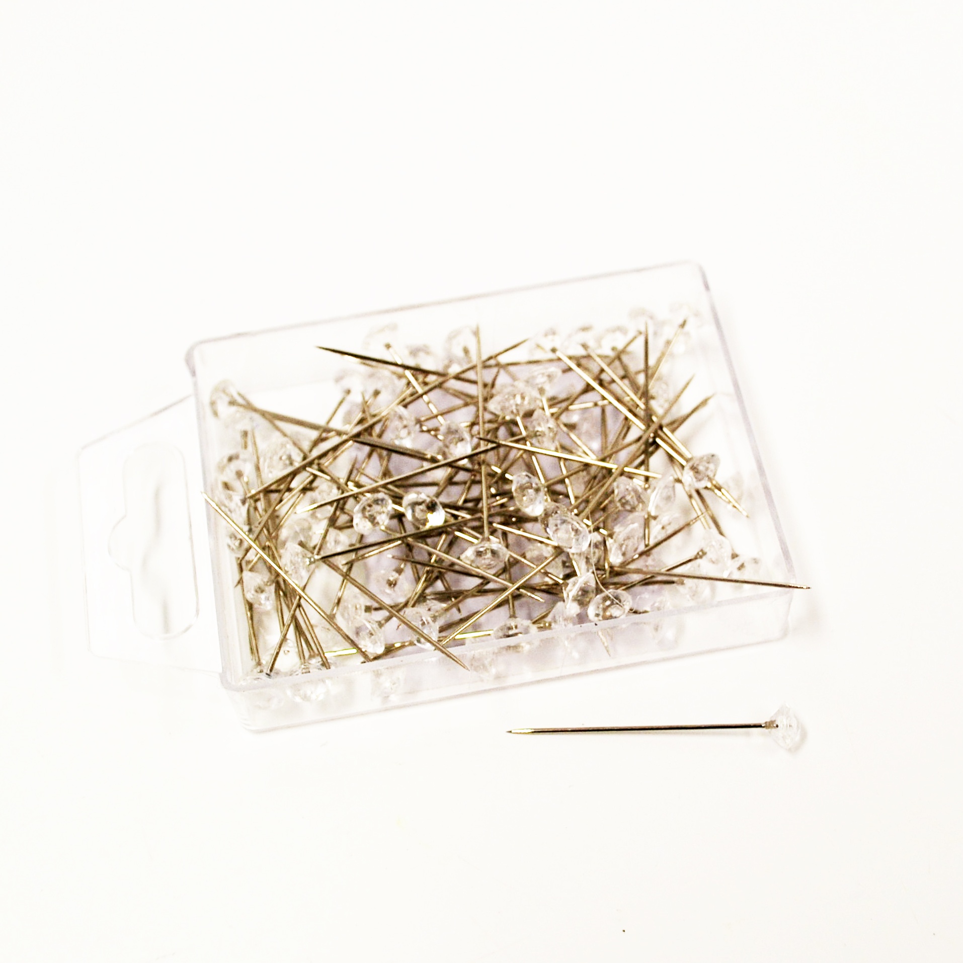 Praktische Stecknadel mit Diamant, die in der Floristik ein wichtiger Dekoartikel ist. Duch die Stecknadel lassen sich die Diamanten wunderbar einarbeiten in Blumensträuße, Gestecke oder auch in Tischbuketts.