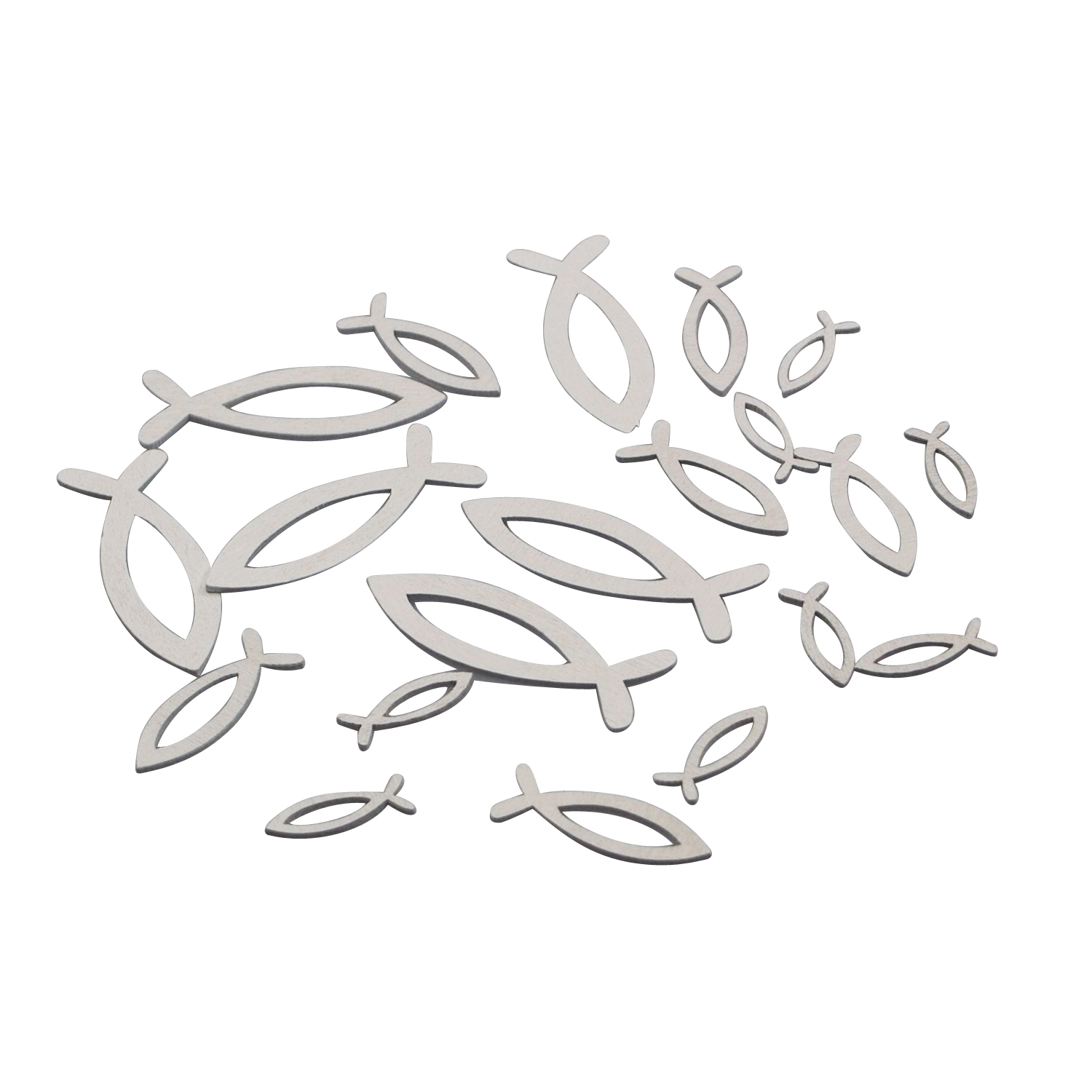 Holzfische weiß in unterschiedlichen Größen sortiert 24 Stück
