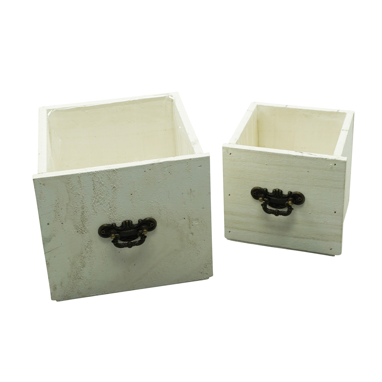 Zwei schöne Schubläden, die auch in einem Schaufenster schön nebeneinander und aufeinander dekoriert werden können. Die im Set befindlichen zwei verschiedene Größen übereinander und mit kleinen Ranken oder Gräsern bepflanzen - sieht toll aus.