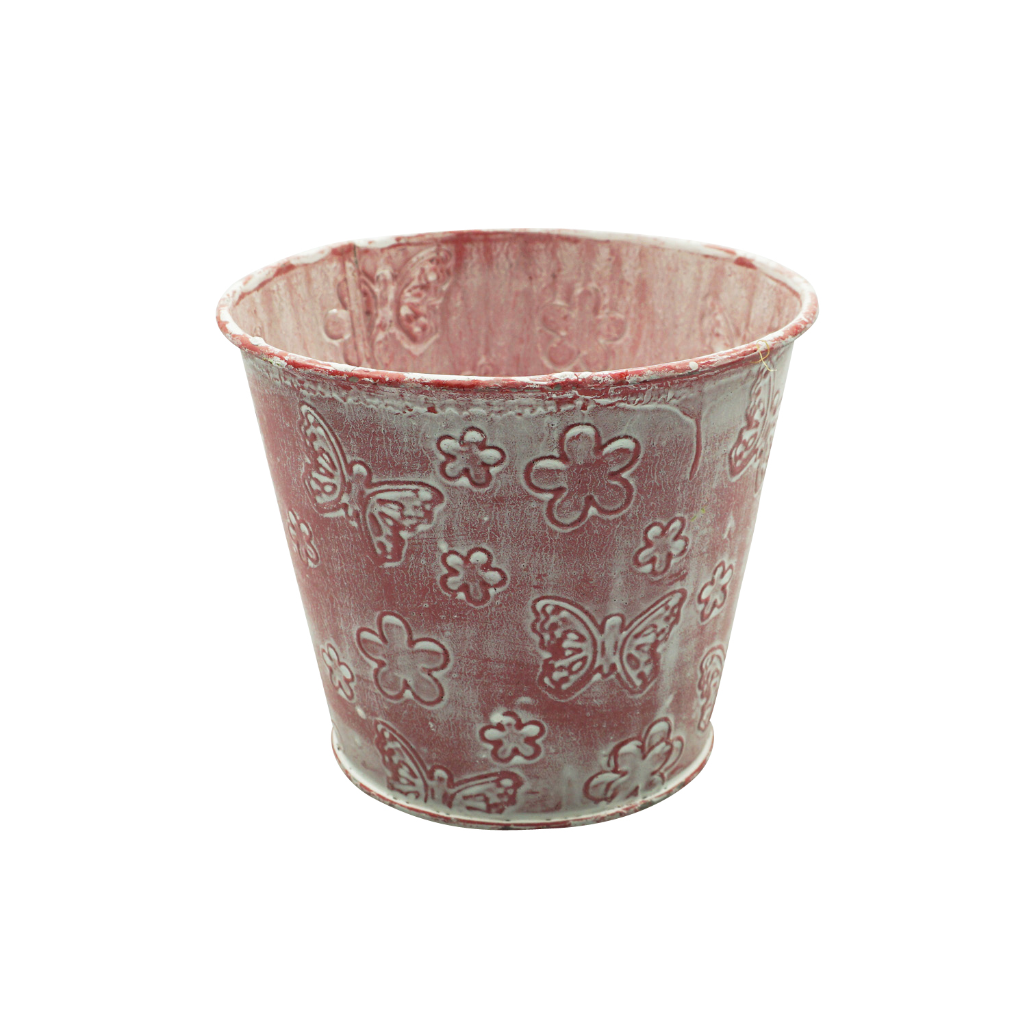 Zinktopf rosa/weiß mit Schmetterlingen Ø12cm 1Stk